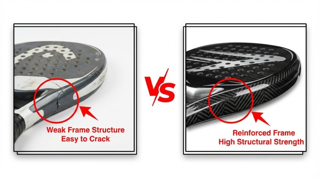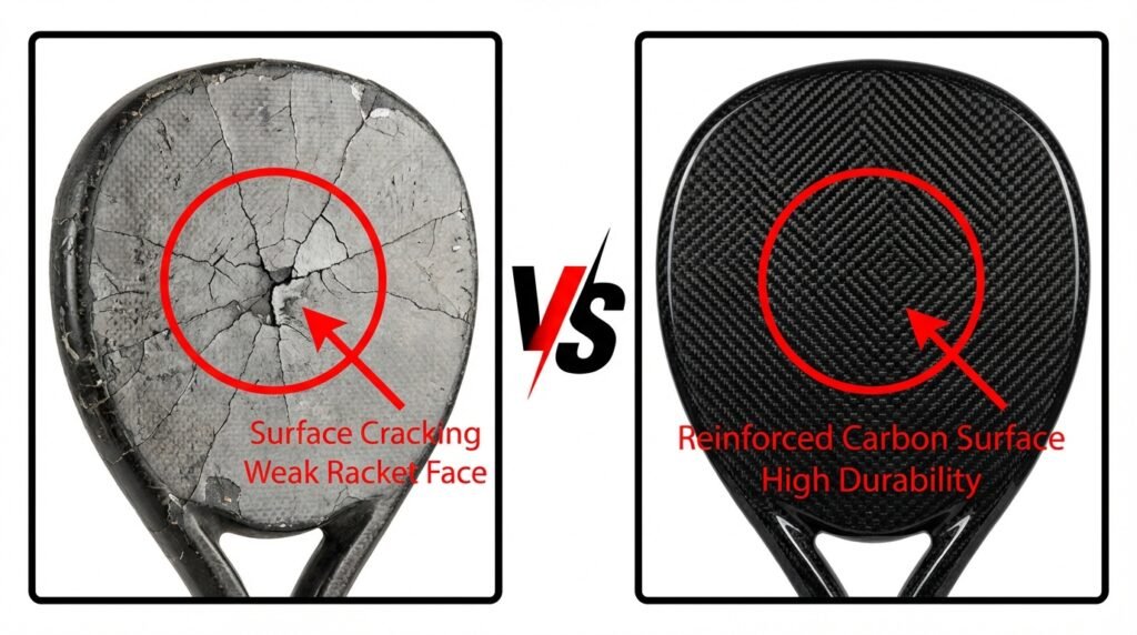 Low-quality rackets often face issues like surface cracking, weak frames, loose handles, and fast wear. Our advanced materials and reinforced construction are designed to deliver stronger, more durable padel rackets.