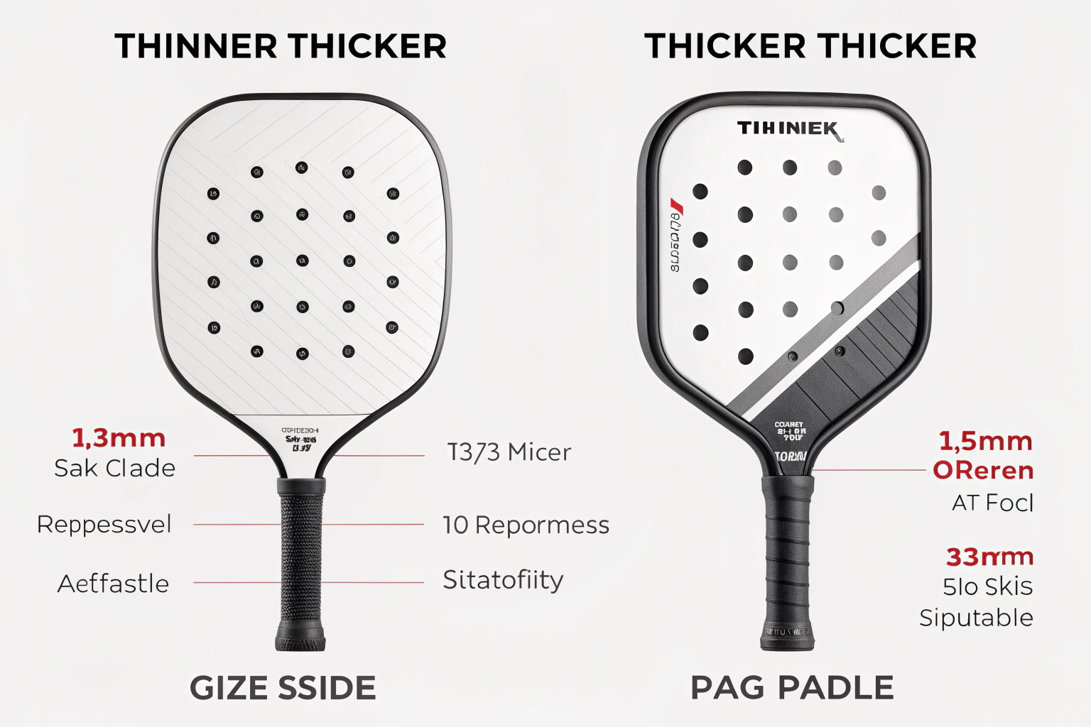 Thinner paddles are ideal for players who need a more responsive feel for delicate shots, while thicker paddles provide more stability but can reduce responsiveness.