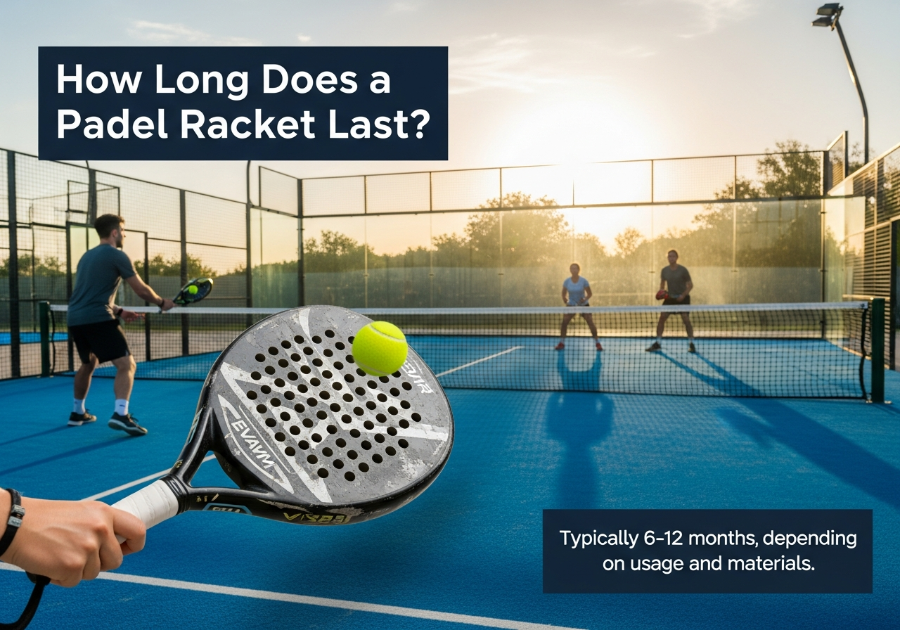 A padel racket typically lasts 6 months to 2 years, depending on playing frequency, material quality, impact intensity, environmental exposure, and factory production standards. High-quality carbon rackets last longer, while softer or beginner-level constructions wear out faster.
