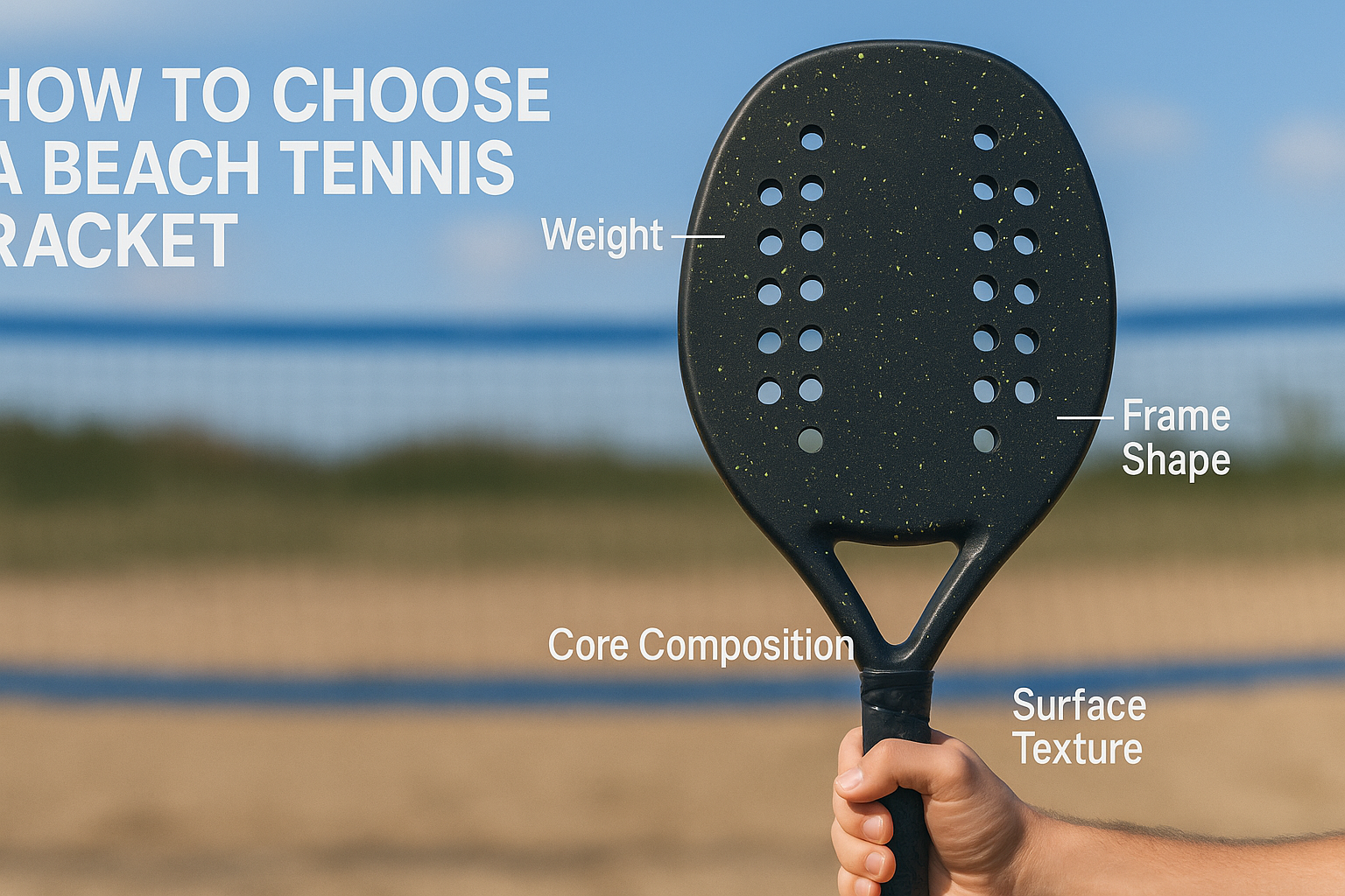 Choosing a beach tennis racket involves evaluating weight, balance, frame shape, core composition, and surface texture. Each factor must align with user skill levels and playing preferences.