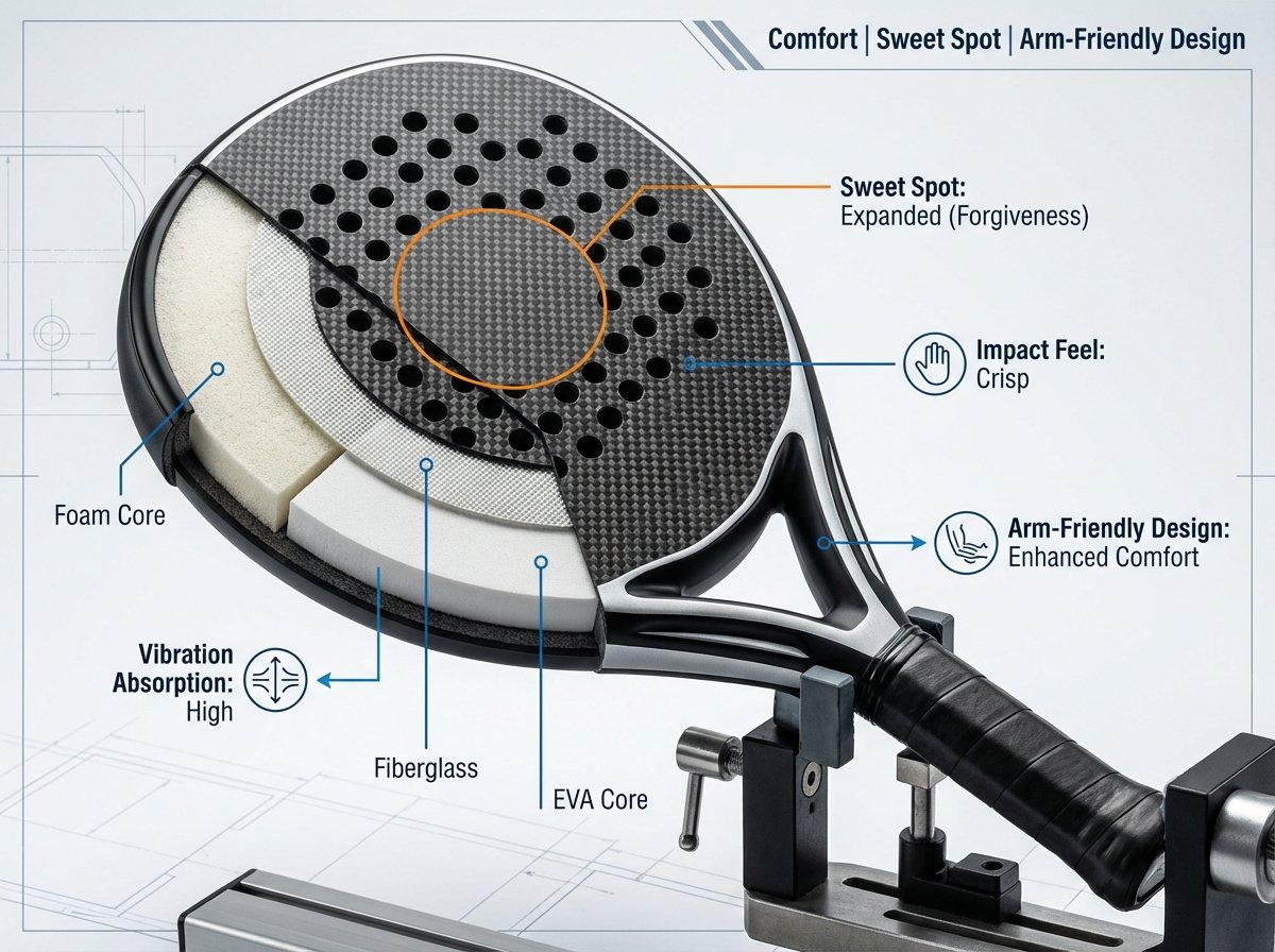 Material choice directly changes how much stress returns to the arm and how forgiving the racket feels in real play.
