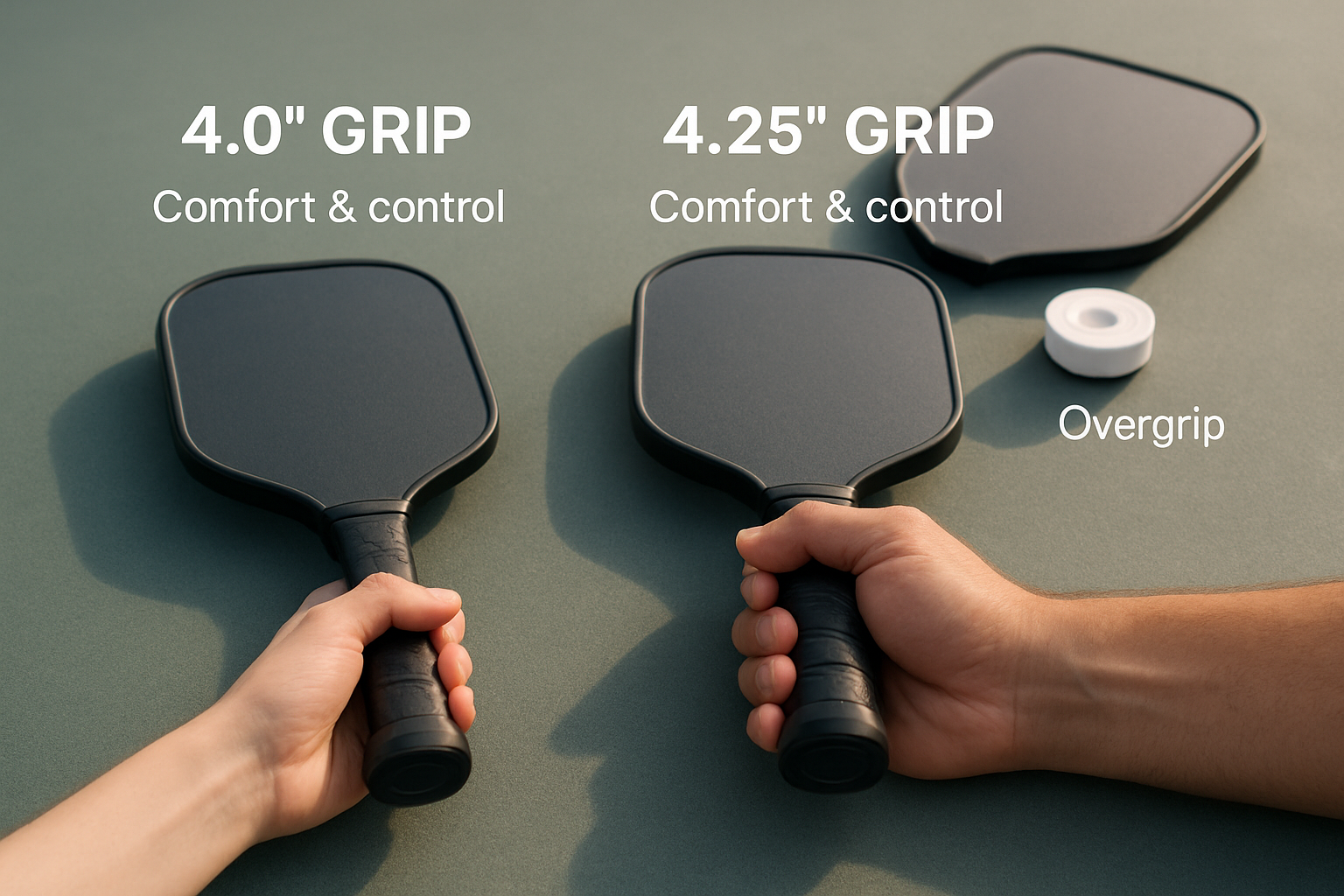 The correct grip size helps reduce the risk of injury and provides a better connection with the paddle. When choosing a grip size, keep comfort and control in mind over aesthetics.