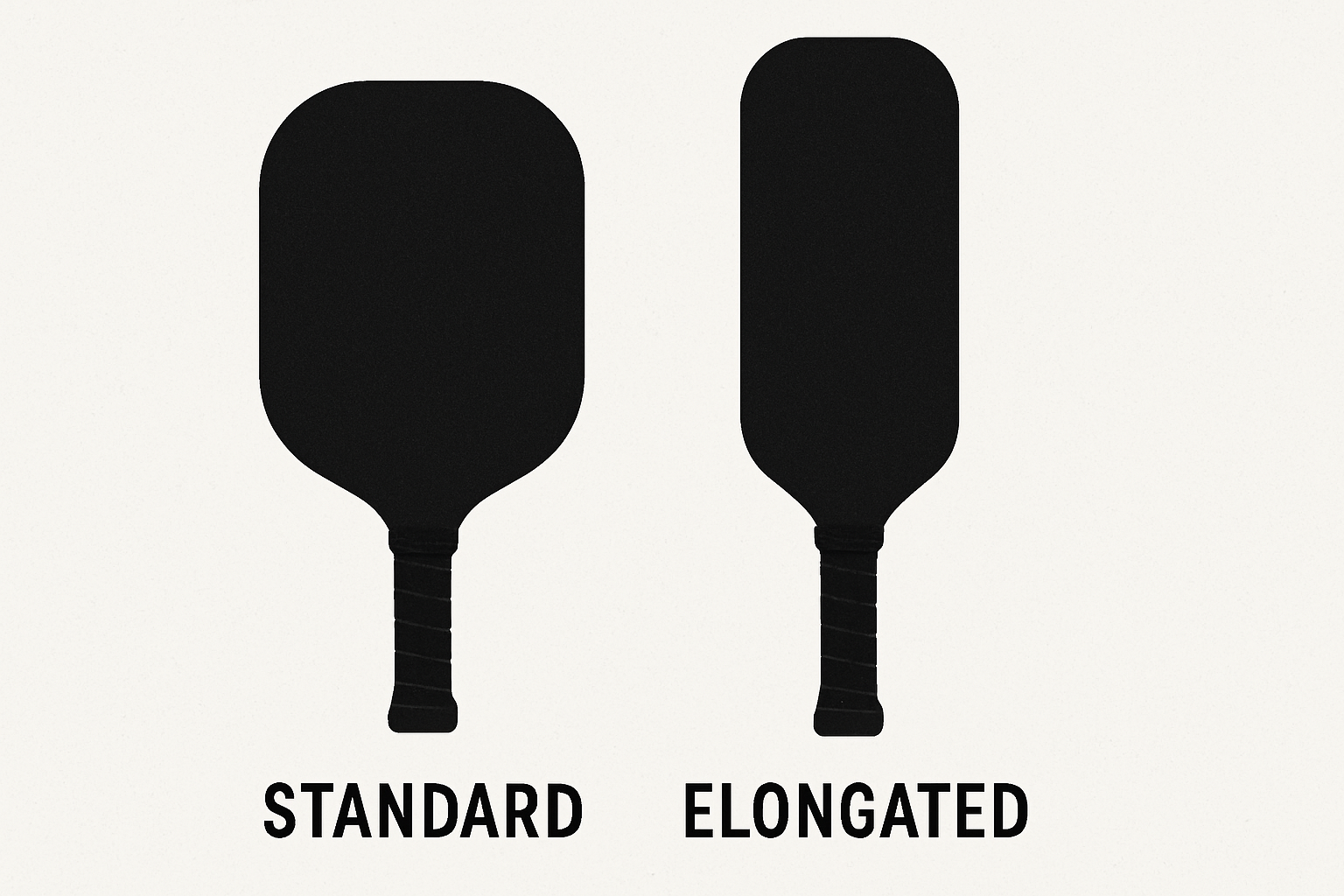 Elongated paddles provide more reach but a smaller sweet spot. While these paddles may seem appealing for their extra reach, they can be more challenging for new players who have yet to develop consistency.
