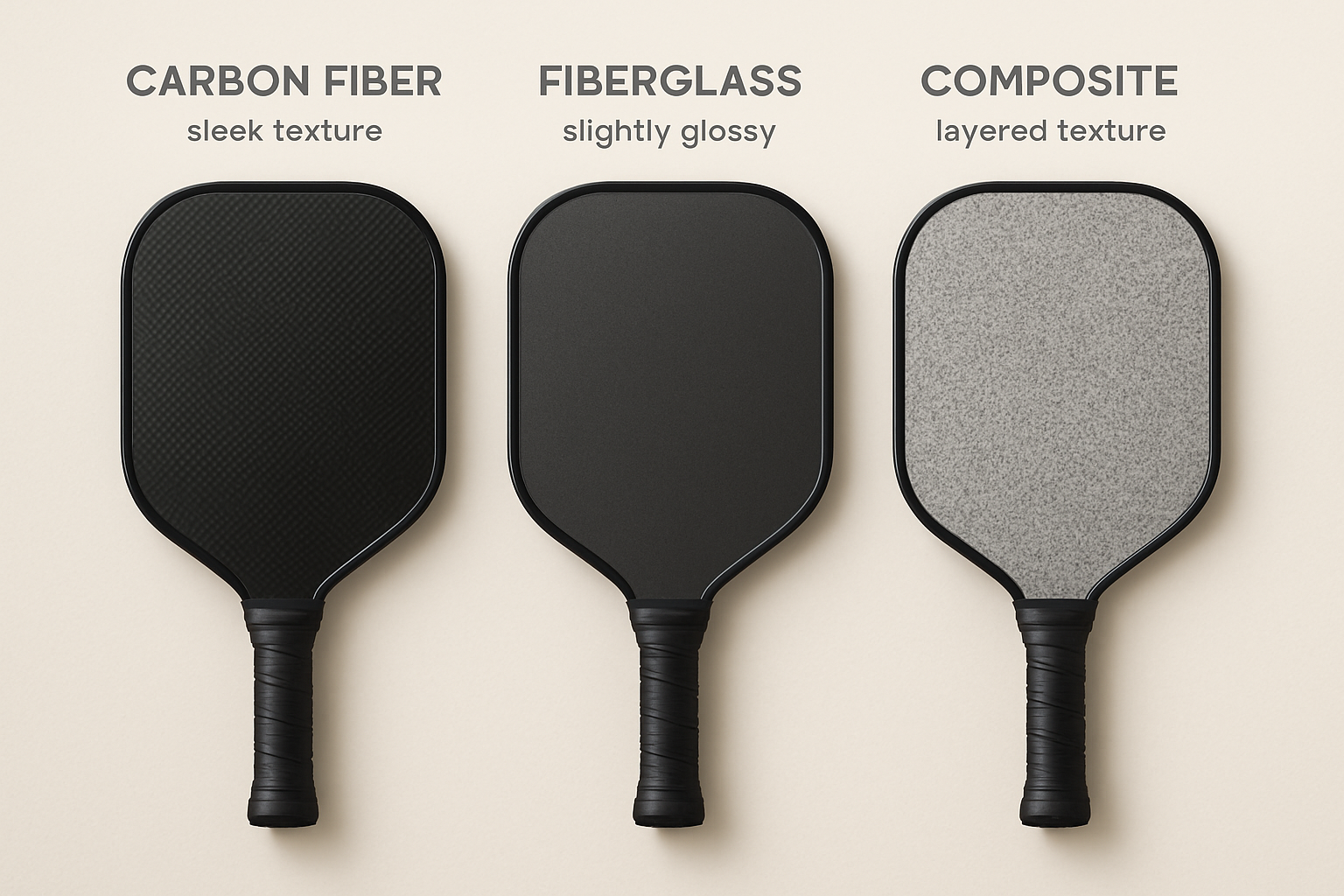 Carbon fiber is stiff and light. It doesn’t bend much, so it gives you consistent control, especially in soft play and net shots. Players who like control and spin often prefer carbon fiber. The texture holds the ball longer, helping generate spin. But it sacrifices power. It’s also the most expensive because the weaving and molding process takes time.