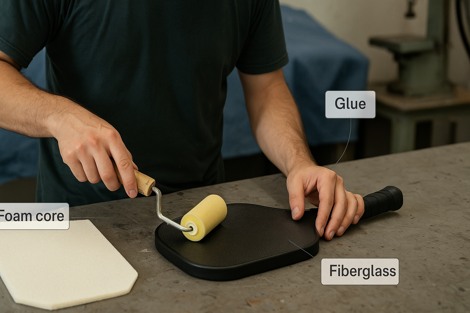 Premium paddles are produced using compression molding, vacuum lamination, and laser-cut shaping for exact tolerances and smooth feel.